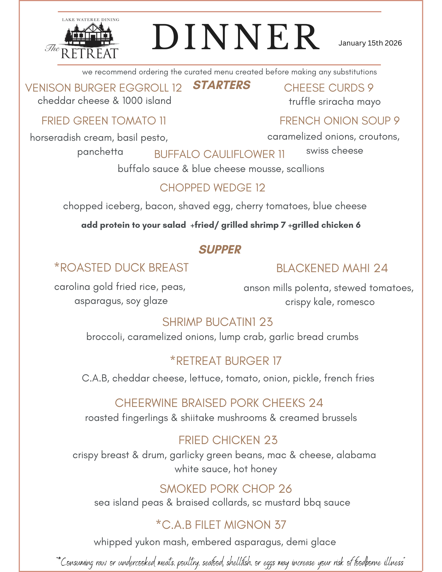 Wednesday- Saturday Dinner Menu Begins at 5pm